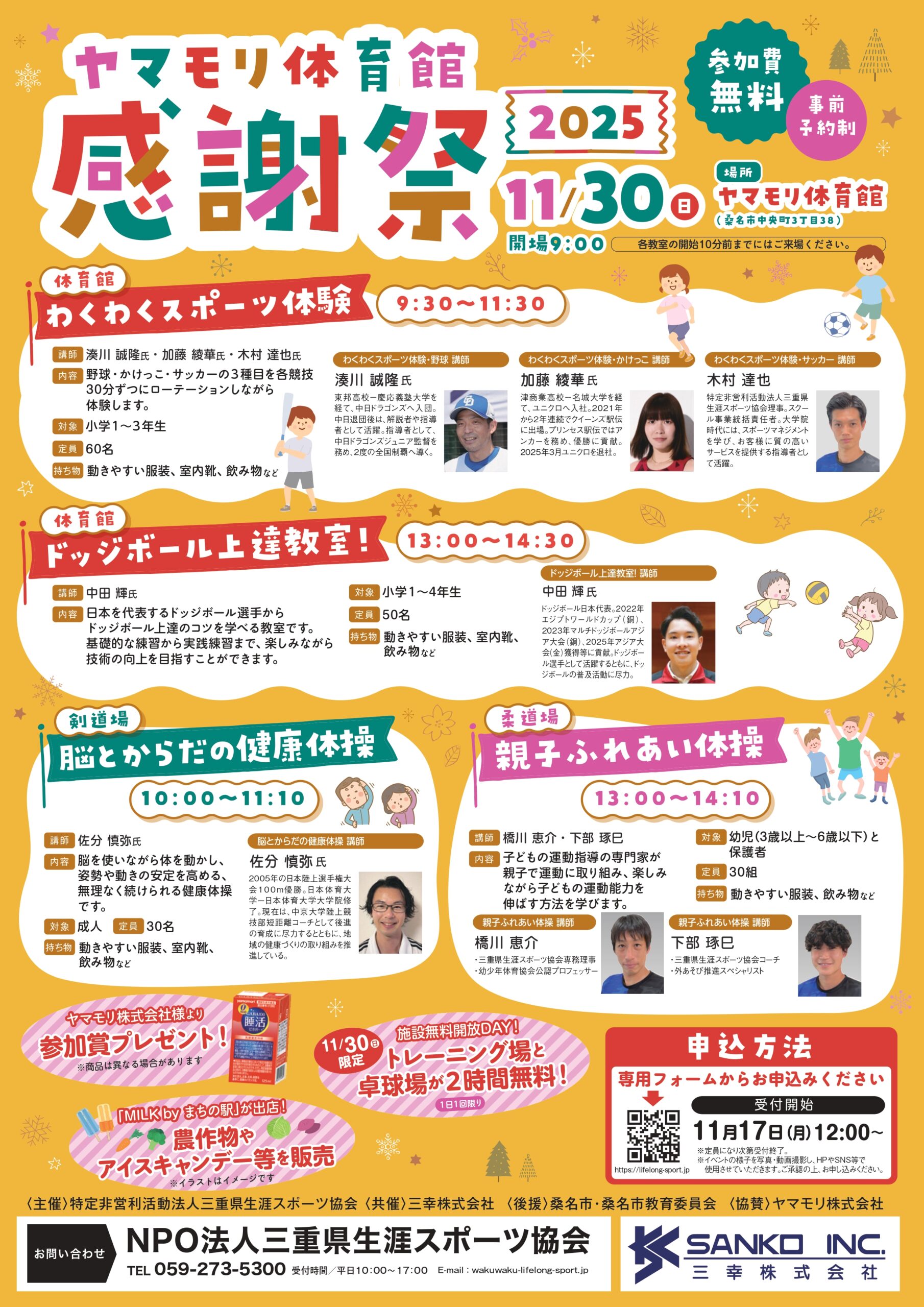 ヤマモリ体育館、NTN総合運動公園 令和6年9月より毎週火曜日を休業とさせていただきます。